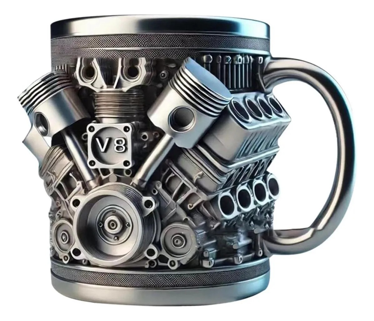 Se você carrega a paixão por motores no sangue, a Caneca V8Brothers foi feita para você. Inspirada na robustez e na engenharia dos lendários motores V8, ela traz um design exclusivo em alto-relevo que remete a pistões, cilindros e engrenagens, transformando sua pausa para o café em uma verdadeira experiência automotiva.